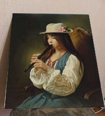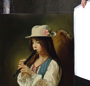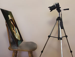 It is better to take a picture in daylight since usual inside lighting gives a yellow tone. That’s why you take your paintings outside (on a balcony or a deck). But keep in mind, that on a balcony (or a deck) illumination is not even, and light usually goes on the one side. Therefore it is desirable to put a large plain piece of paper sideways from a picture. Daylight will be reflected from it and will create additional illumination for a picture. As a result - the general illumination will be more appropriate.
